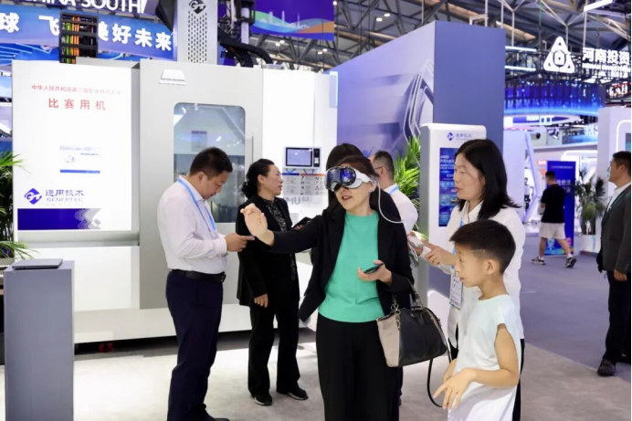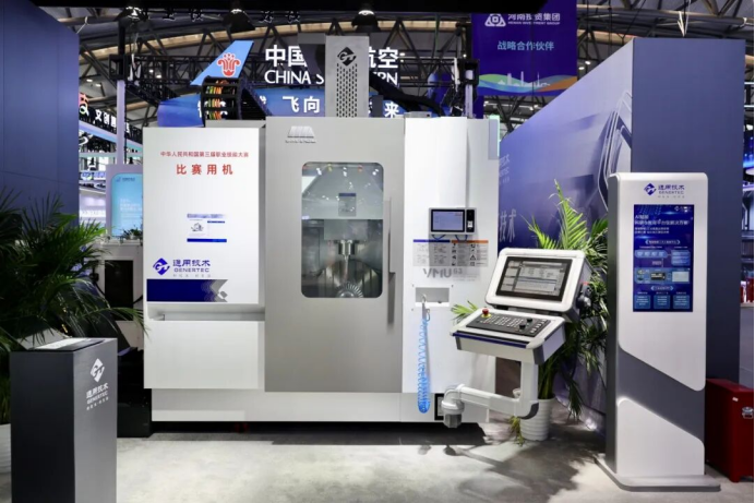 本屆大賽期間,通用技術(shù)集團(tuán)在戰(zhàn)略合作伙伴展區(qū)設(shè)立展臺,集中展示MDH50臥式加工中心、VMU63五軸立式加工中心等兩臺高檔機(jī)床設(shè)備,以及“AI+機(jī)床”、“AR+機(jī)床”、數(shù)字車間管理系統(tǒng)等三款解決方案,將五軸聯(lián)動、人工智能等前沿技術(shù)融入教學(xué)場景,打造智能化教學(xué)解決方案,促進(jìn)教育鏈、人才鏈與產(chǎn)業(yè)鏈有機(jī)銜接。